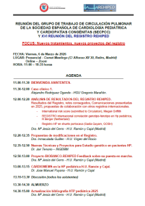 REUNIÓN DEL GT DE CIRCULACIÓN PULMONAR DE LA SECPCC Y XVI REUNIÓN DEL REGISTRO REHIPED